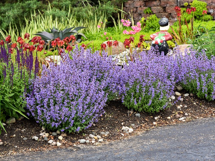 Almindelig blåkant, Nepeta x faassenii 'Purrsian Blue'® har en bred anvendelse. Med sin kompakte vækst egner den sig godt plantet i mindre grupper i forgrunden af staudebedet eller som selskabsplante til roser. Andre gode selskabsplanter er bl.a. efterårsblåaks, Sesleria autumnalis, alunrod, Heuchera, skønhedsøje, Coreopsis, røllike, Achillea og lampepudsergræs, Pennisetum. Den kan også anvendes som bunddække på større arealer eller plantes i krukker. Det grålige løv og de blå blomster gør den desuden til et godt alternativ til lavendel.