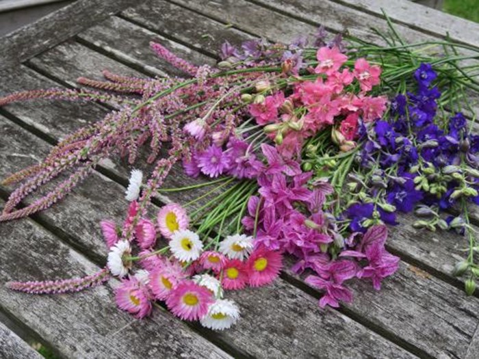 Når planterne i skærehaven vokser og forgrener sig, udvikler de stilke i mange forskellige længder. Betragt det som en fordel, og lad være med at prøve at ensrette de høstede stilke ved at korte dem af. Du ved jo ikke, hvad de skal bruges til endnu, så du kan sagtens få brug for stilke med forskellig længde.
