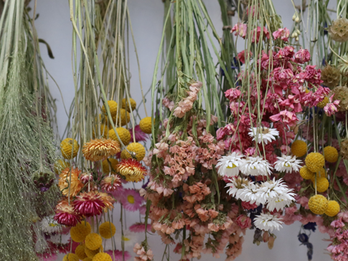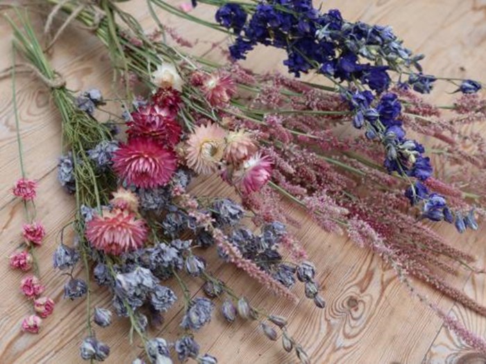 Når abstinenserne efter blomster af egen avl melder sig i vintermørket, er en rig samling tørrede blomster god medicin. Blomsterne skal tørres, mens skærehaven er i topform, men nydes, når den ligger brak.