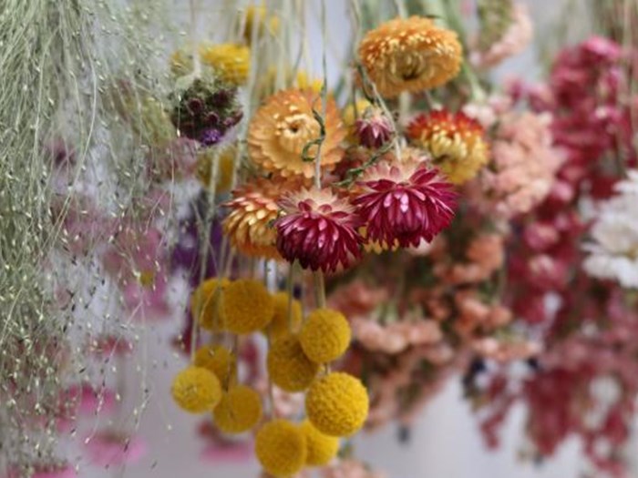 Når du begynder at tørre blomster, viser det sig hurtigt, at der er forbløffende mange, der egner sig til formålet, så det er i virkeligheden bare at prøve sig frem. De bedste er dem, der ser lidt tørre ud i forvejen med kæmpeevighedsblomst, Helichrysum bracteatum, med knitrende papiragtige blomster som et oplagt eksempel.