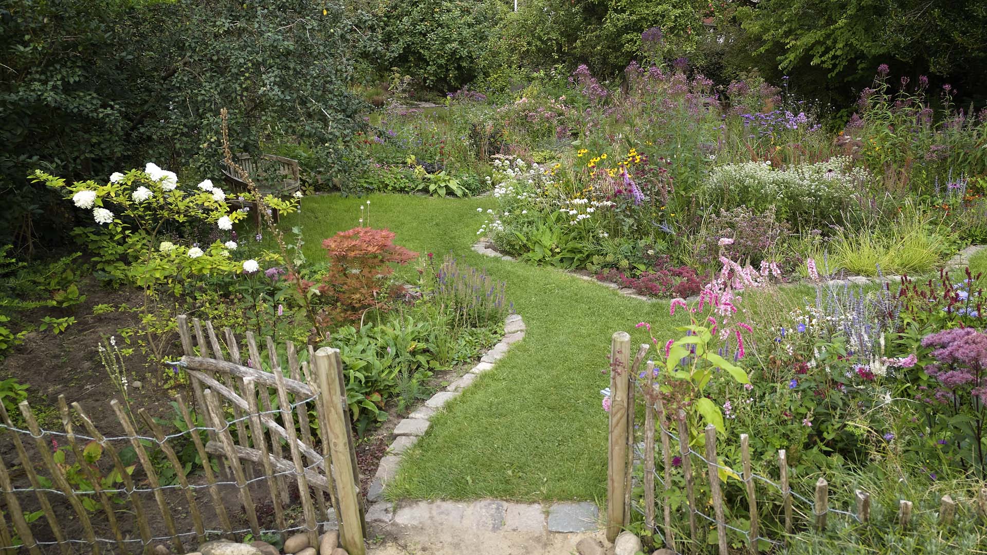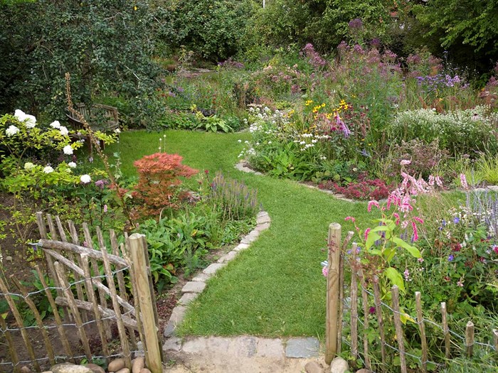 Det er ikke i alle haver der er brug for en stor græsplæne til fodboldkampe og vejrmøller. Har du ikke det behov, og vil du hellere fylde haven med blomstrende bede, så kan græsset fungere som stier mellem bedene. Det giver en spændende haveoplevelse, når man bevæger sig imellem, rundtom, bagom og igennem, og haven kan føles større end den i virkeligheden er.