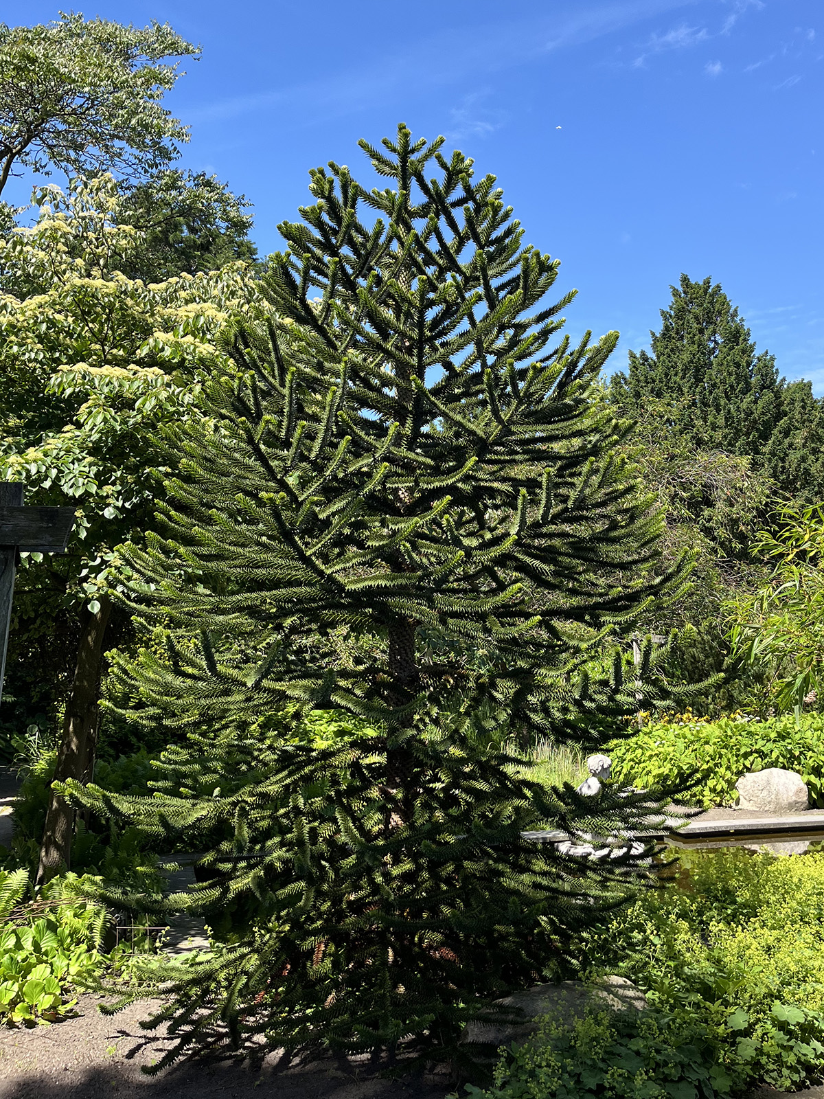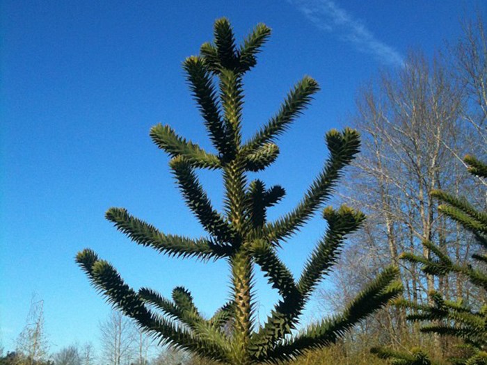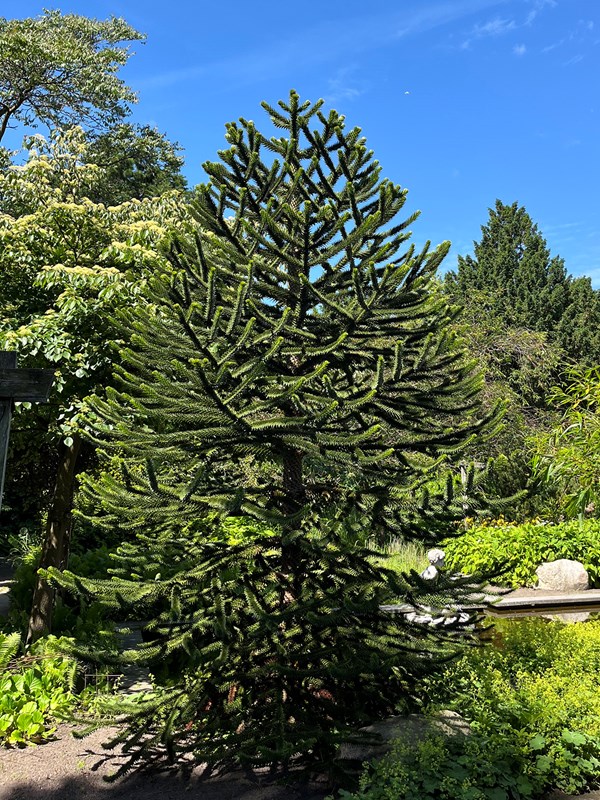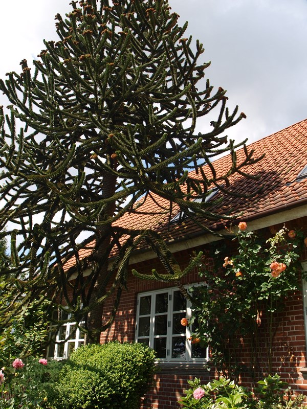 I flere danske forhaver troner det store, særprægede træ abernes skræk, Araucaria araucana, som mange også kender under navnet abetræ.