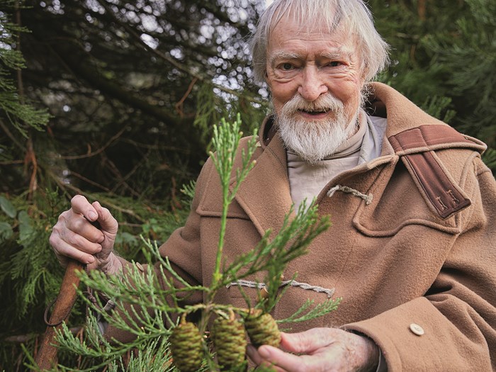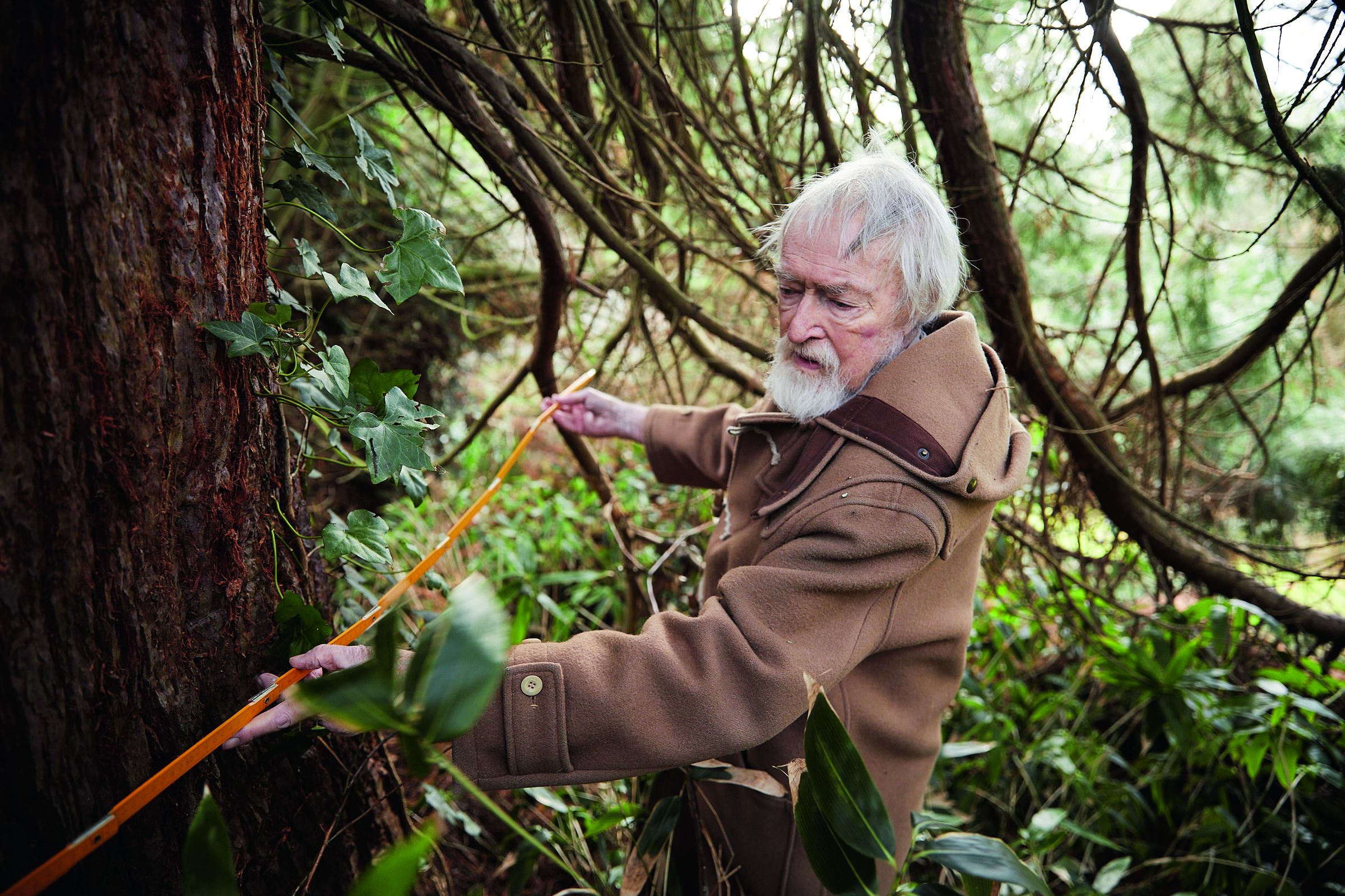 Den måler omkring to meter i diameter nu, højden har jeg ikke helt styr på, men sidst jeg målte den for nogle år siden, var det cirka 22-23 meter,« fortæller den 88-årige tidligere lektor i plantesygdomme Jørgen Bech-Andersen om sit enorme mammuttræ, Sequoiadendron giganteum. Og hvordan er sådan et træ så begyndt at vokse i en have i Holte?