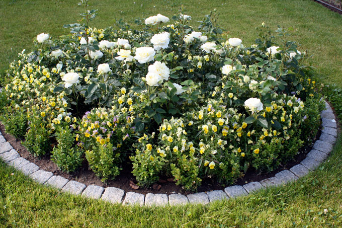 Hornvioler er også velegnet som bunddække i et ellers lidt barbenet rosenbed. Plant hornviolerne med ca. 15-20 cm afstand, gerne i trekanter, også kaldet verbant, med grupper af tre. I løbet af sommeren vokser de tre planter sammen og danner et flot blomstrende tæppe for foden af roserne.