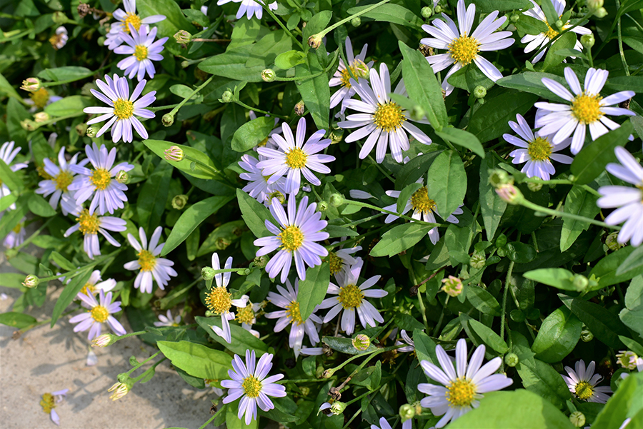 Japansk asters, Kalimeris incisa, ’Nana’ er en lille, meget anvendelig staude til forgrunden af bedet, 20 cm høj. Den er tæppedannende og rigtblomsterende med blålilla blomster, der ligner asters, over en meget lang periode fra juni til september. Den er ikke kræsen med hensyn til jord og trives i sol til halvskygge. Det er en sund planter, der aldrig får meldug.