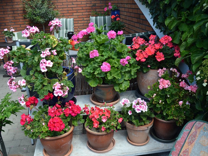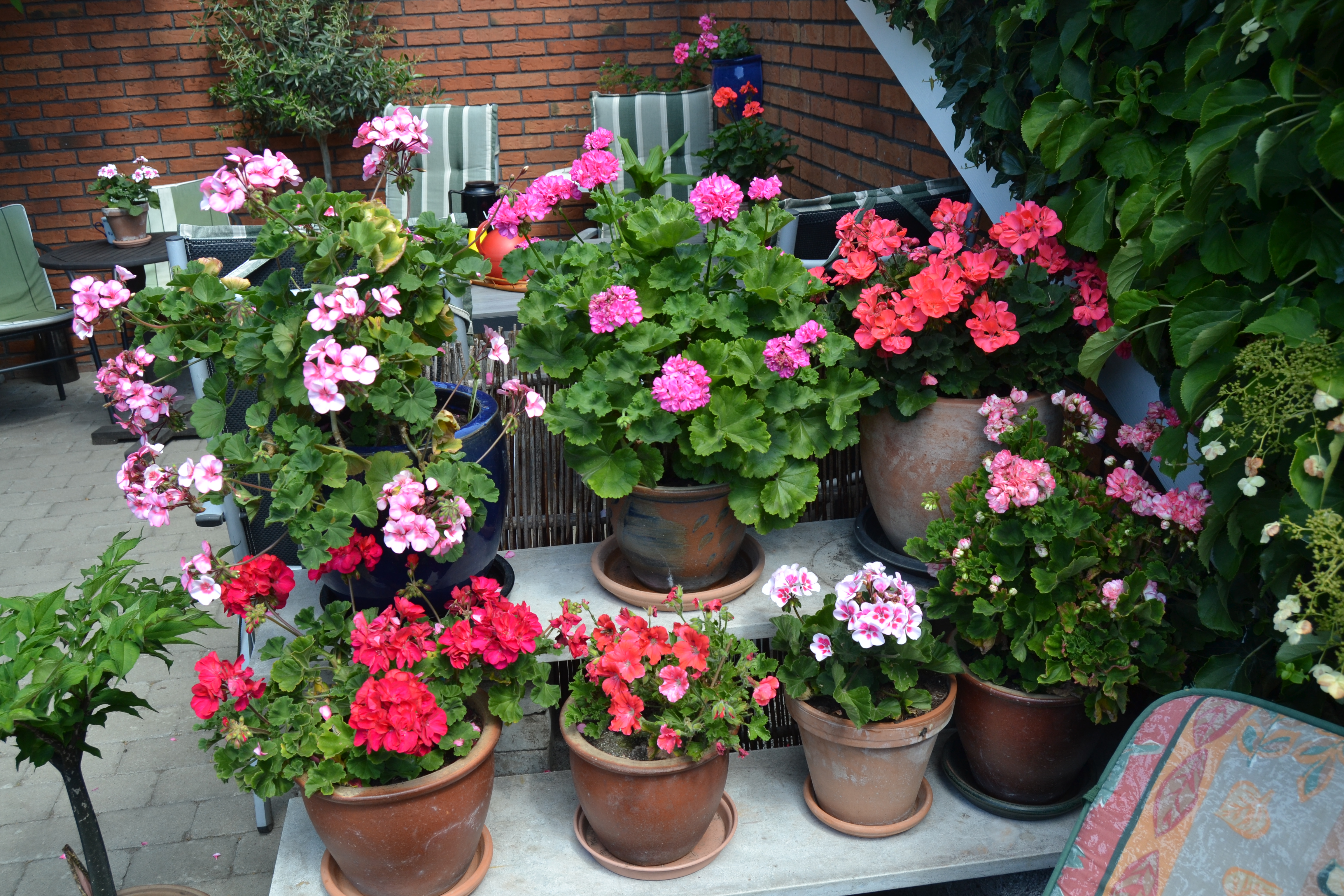 Orangeriet på 48 m2, der blev bygget for 10 år siden, bruges hovedsageligt til en pæn samling pelargonier, et par vinstokke og tomater m.m - og selvfølgelig også som opholdsrum/udestue til at nyde planterne.