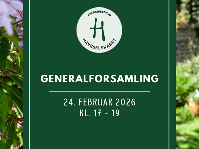 Haveselskabet Frederiksberg inviterer til generalforsamling tirsdag den 24. februar 2026 kl. 17–19.