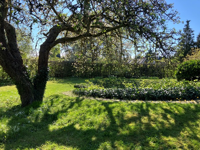 Kom med på en guidet tur med Sonja Poll i den smukke have. Hvor bøgehække indrammer haven og den nedsænkede terrasse.