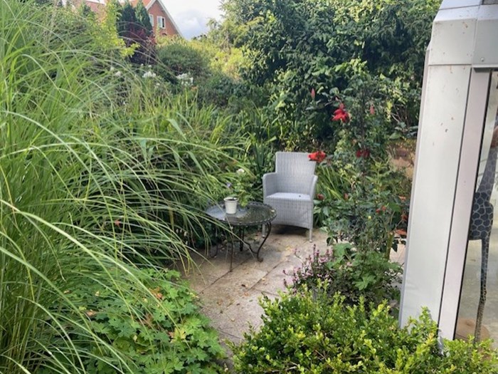 Med Bodil’s egne ord, er haven indrettet lidt ‘vildt’, for at matche beliggenheden op ad Rude skov.