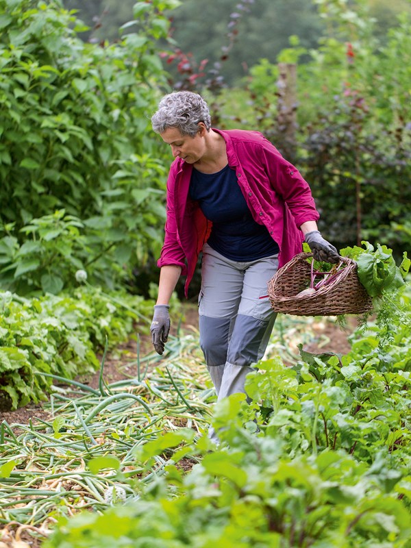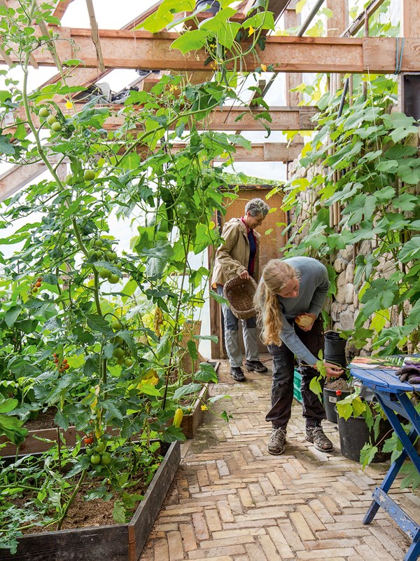 De har tidligere haft problemer med gulerodsfluer og kålsommerfugle, men efter at de er begyndt at lægge net over de udsatte afgrøder, har de fået en mærkbart bedre høst. Ud over den store køkkenhave har familien også grise, får og masser af frugt og bær. Dermed er de næsten selvforsynende: