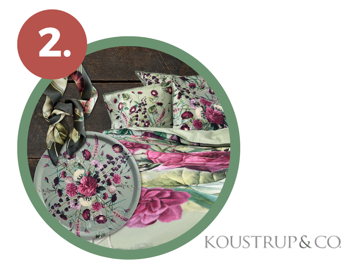 Vind en smuk gavepakke fra Koustrup & Co med to sengesæt i økologisk bomuld, et smukt silketørklæde og en elegant bakke i birketræ. Alt sammen fra fra Blossom Garden-kollektionen, skabt i samarbejde mellem Koustrup & Co og Jim Lyngvild. Pakken har en samlet værdi af 3000 kr.