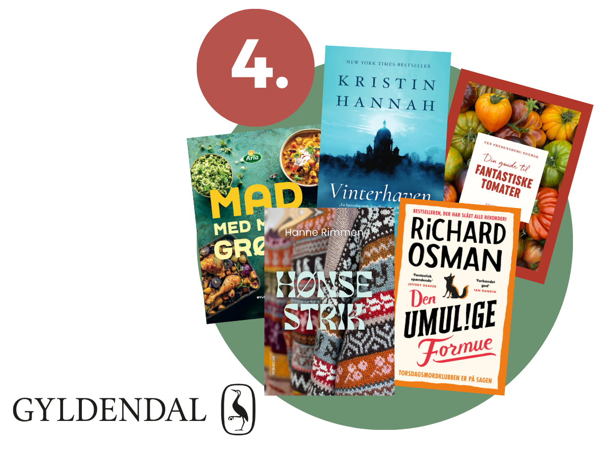 Når juleferien nærmer sig, og det ikke lige er tid til at gå i haven, så er det måske tid til at få læst lidt. Gyldendal udlodder en bogpakke med 5 skønne bøger. Pakken indeholder en krimi, en fængslende fortælling, noget om mad og tomater samt en kreabog om hønsestrik. Pakken har en samlet værdi af 1500 kr.