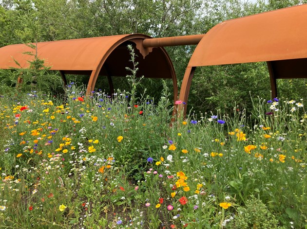 Staudebed med kærtepileurt, purpursolhat, perovskia og græsser. Foto: Ann Malmgren
