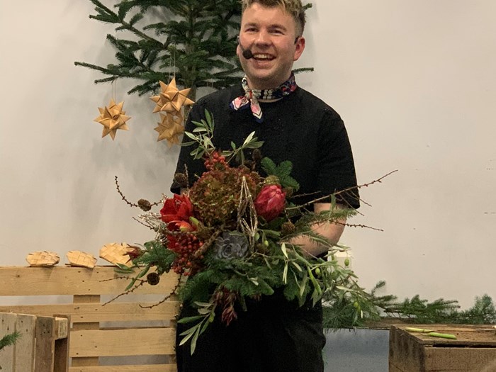 I år er vi så heldige at byde velkommen til Sanne og Mattias fra Karina - Eksklusiv Blomsterkunst fra Vejle. De vil dele ud af deres viden og vise os tips og tricks til årets juledekorationer.