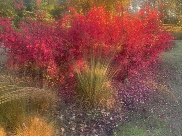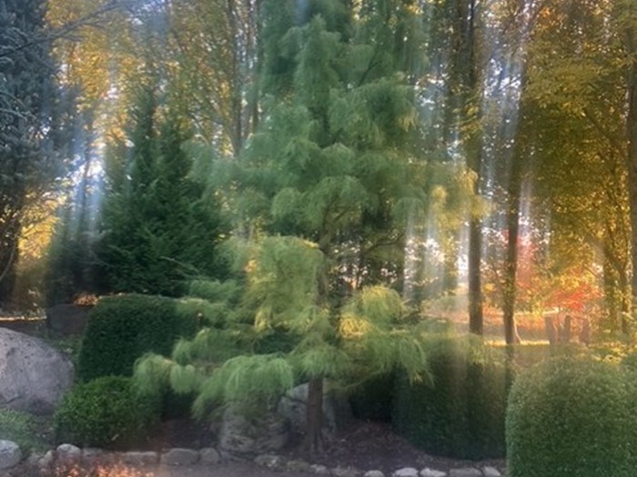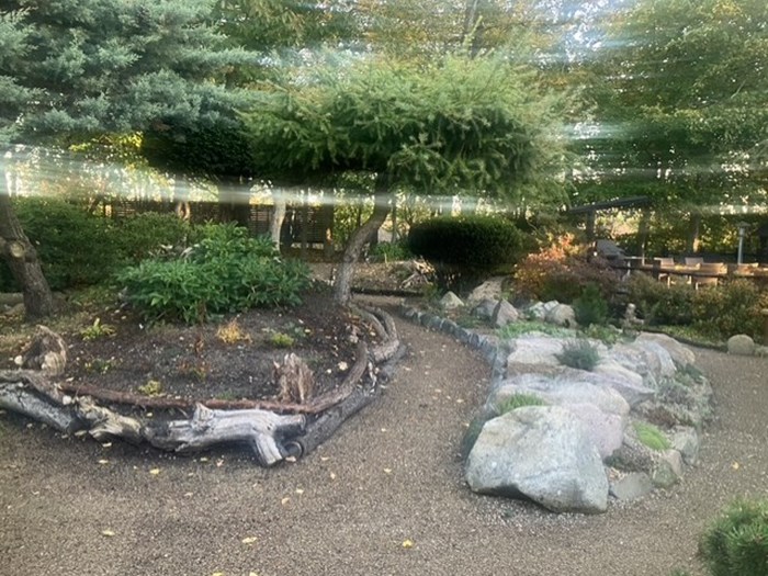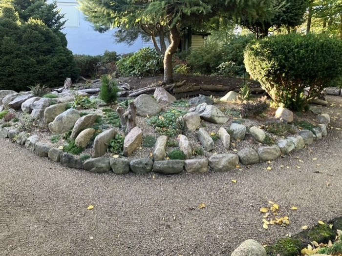Deres have er anlagt over mange år med masser af stenbelægninger, rhododendron, hortensiaer, vandløb, små søer, lysthuse samt fine siddepladser. Der er i de seneste år lagt endnu et stykke til haven, hvor der bl.a. er græsser. Alt i alt en dejlig have med rum og variation i hele sæsonen.