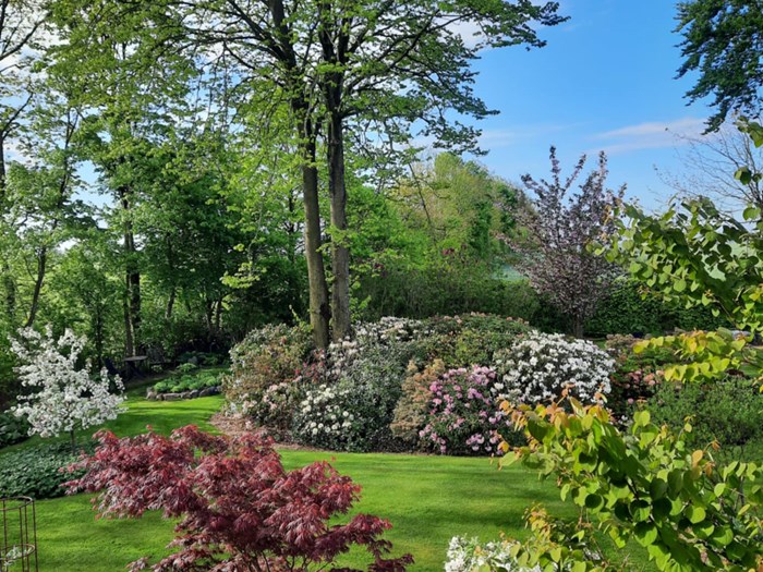 Herefter besøger vi Pia og Michael på Albækvej 18. Haven er en 10.000 m2 stor landbohave, som er etableret fra 2010 og frem. Haven har massere af bede med både stauder, hostaer, rododendron, græsser og hortensia.