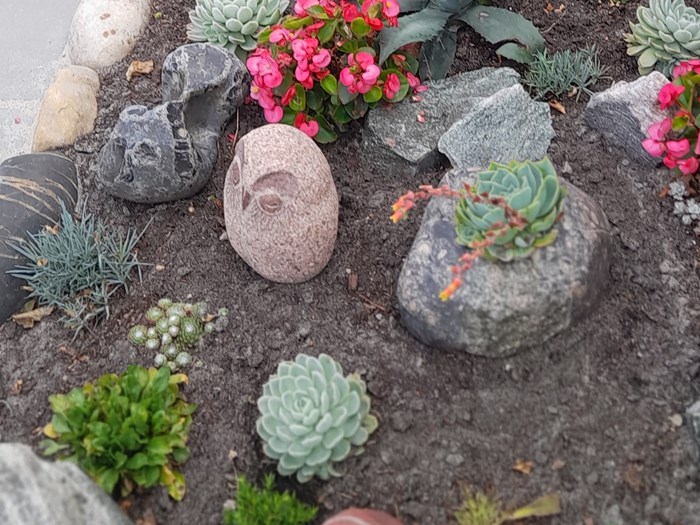 Denne aften skal vi besøge hele 2 skønne haver. Vi starter på Vestervang 8 hos Peter Mosekær, som nok er mere kendt som "Stenhuggeren fra Abildå". Der havde han og hustruen Ester et landsted, og holdt "Åben Have" i 20 år. For 3 år siden flyttede de til Vildbjerg og besluttede, at nu skulle haven være nem (pensionistvenlig).