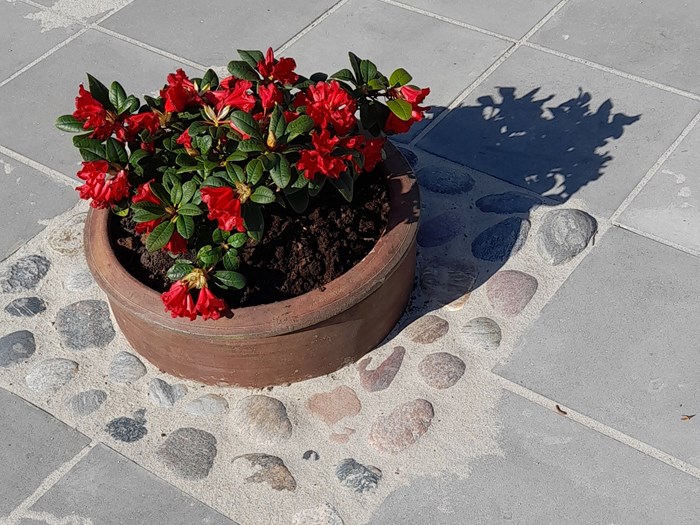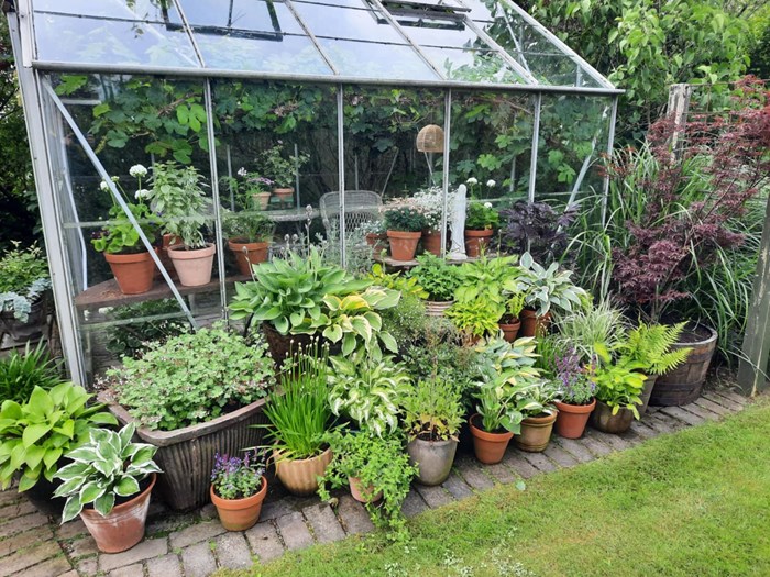 I haven er der også mange snoede stier, terrasser, hyggekroge og siddepladser. Og så er der mange krukker (som i rigtig mange) med blomster, stauder, træer, og buske.