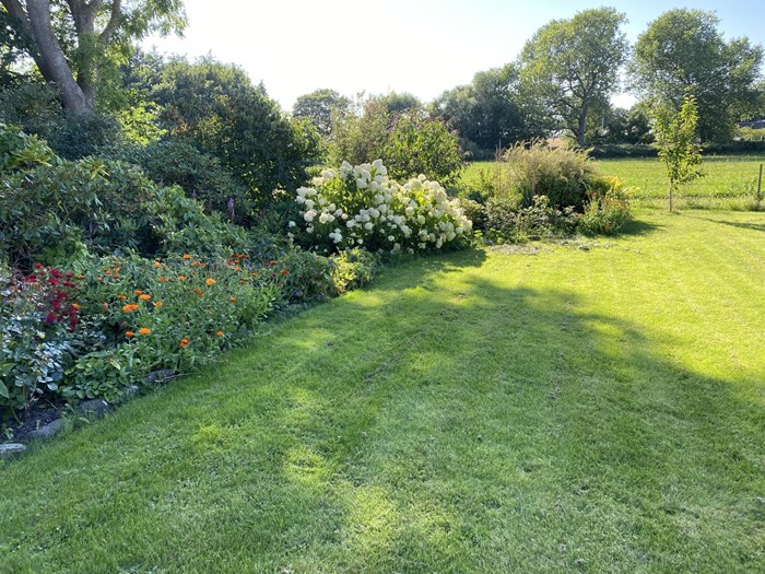 Min have er ikke perfekt og er i disse år under omlægning, så den passer bedre til en senior med børnebørn. Jeg har altid søgt skønhed i udsigten, blomster, det spiselige. Den skal også være god til børn, der leger.