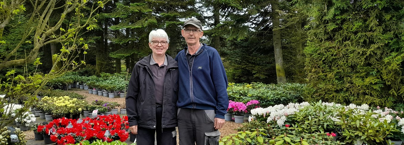 Jane står klar hvis nogen har spørgsmål om Haveselskabet, mens Bent fortæller om stedsegrønne planter