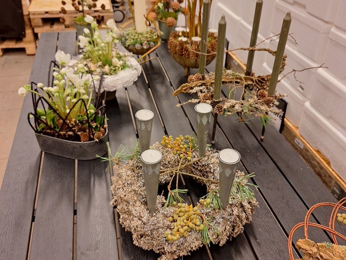 Der vil blive lavet både dekorationer og kranse, med både planter og lys.