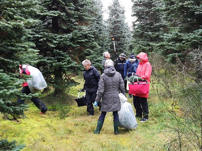 Der skal indsamles gran til adventskransen og de flotte juledekorationer.