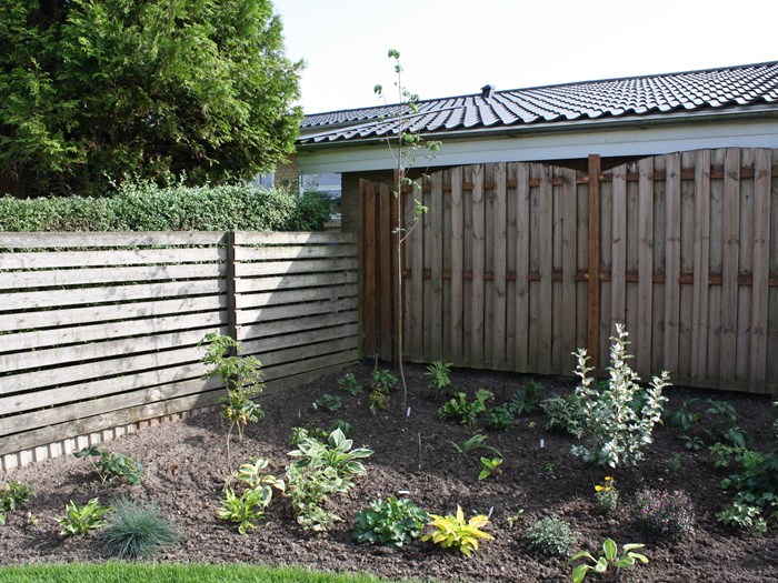 Dog har jeg købt nogle enkle stauder bl.a. solhatte, tre forskellige Acer og en mørk Blærespiræa for at give lidt fylde i bedene.