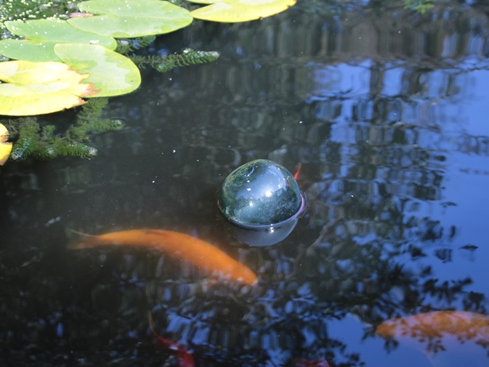 I haven er der 2 bassin systemer. En på øst siden af huset og en på vest siden. Østbassin-systemet består af et hovedbassin, forbundet med bæk til et mellem bassin og videre med endnu en bæk til øst reservoir, hvorfra vand pumpes op i svømmesøen. Fra svømmesøen løber vandet tilbage i hovedbassinet. I alt ca. 60.000 liter vand.