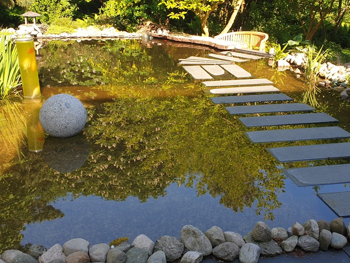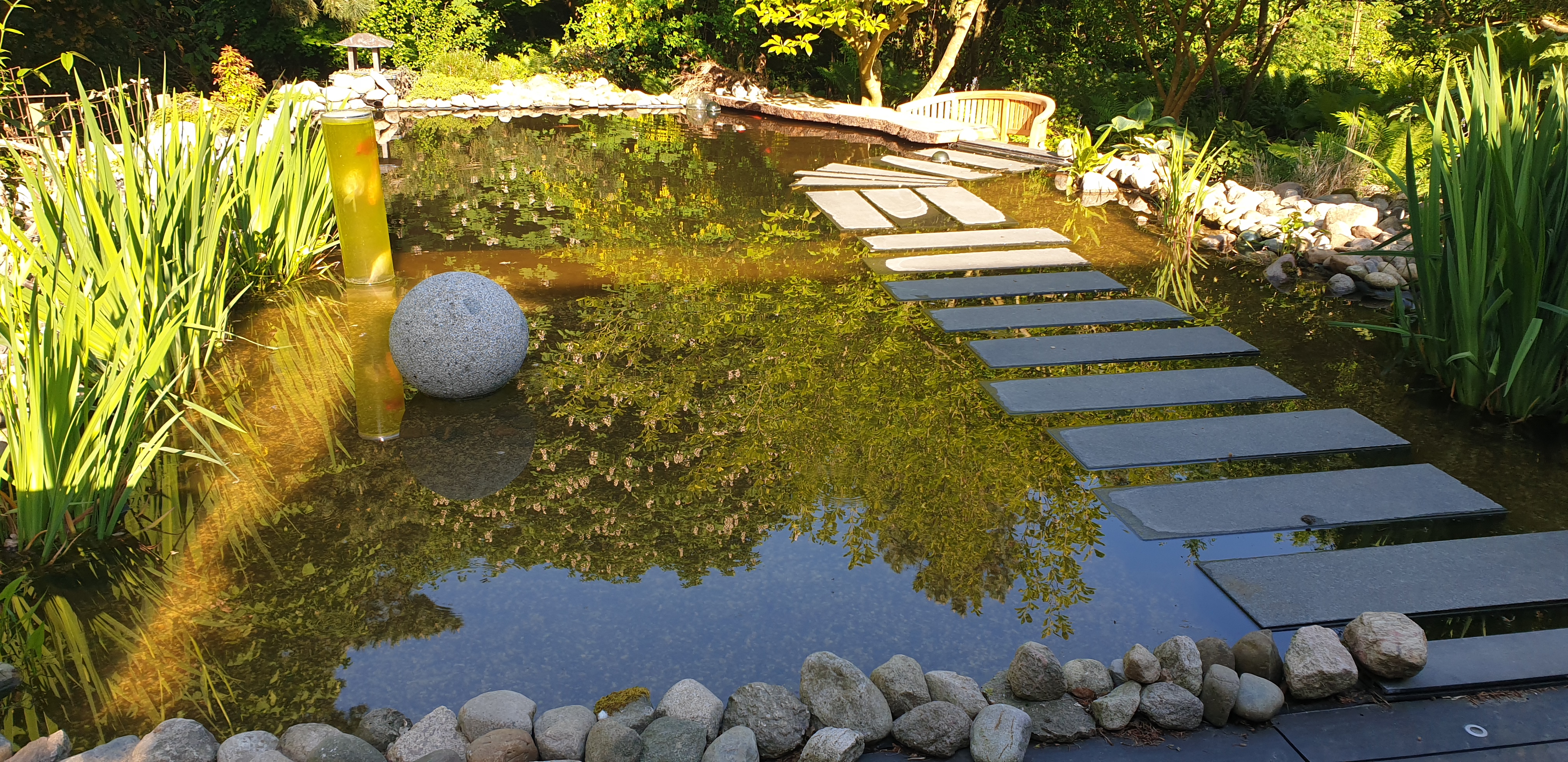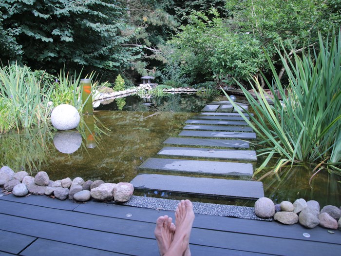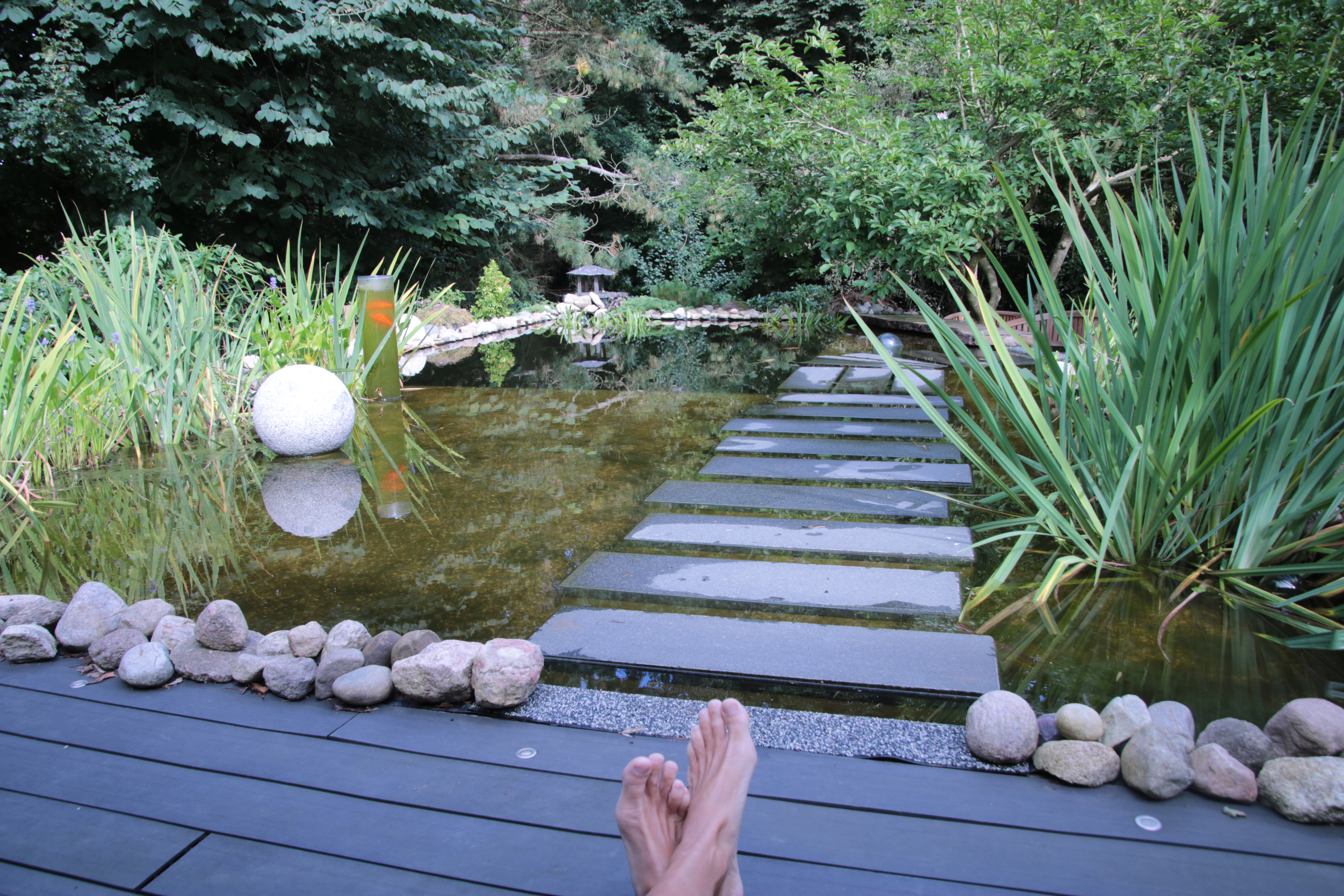 Ubestridt – VAND i alle former. Jeg er meget optaget af haven som Zen, i min oversættelse: mentalt åndehul. Både når der skal slappes af og lades op, men i lige så høj grad når der skal knokles, graves, fældes træer eller andet. Alle mine havebassiner er håndgravede med skovl og trillebør!