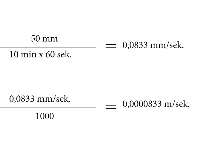 Hvis vandet synker 50 mm på 10 min, vil beregningen se således ud.