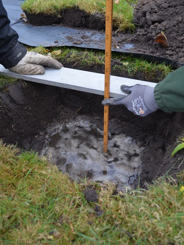 Græstørven fjernes i en firkant på min. 50 x 50 cm