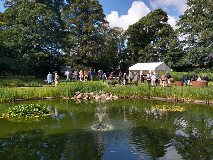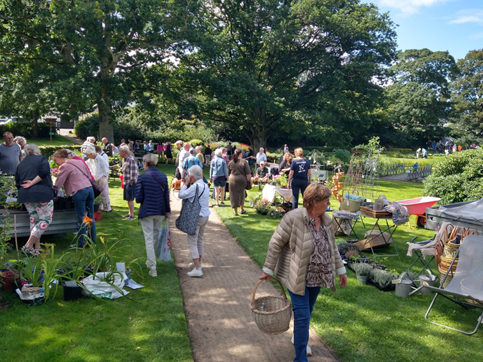 Havemarked i den smukke bypark. Her sælges haverelaterede ting. Kaffe, vand og kage kan købes i Haveselskabets telt.