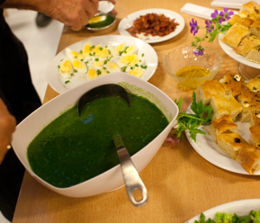 Brændenældesuppe med purløg, æg og bacon