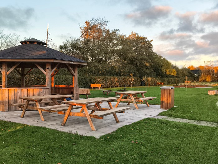 Aftenen starter i Gitte Christensens have. Haven er ca. 7 år gammel, så det er en ung have, men der er en del af haven, der er ældre.