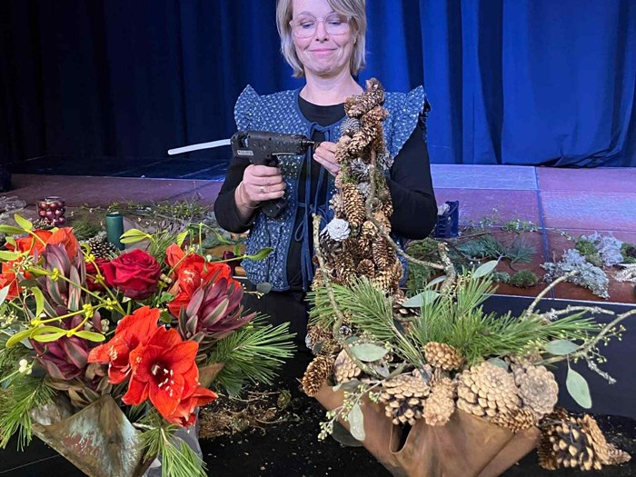 Nu er hun tilbage til sine elskede blomster og arbejder i dag som blomsterdekoratør i Hjørring. Så det er en meget erfaren og kreativ person, vi får besøg af til at underholde ved årets julehygge i Havekredsen. Arrangementet afvikles på Brovst Sport- og Kulturcenter.
