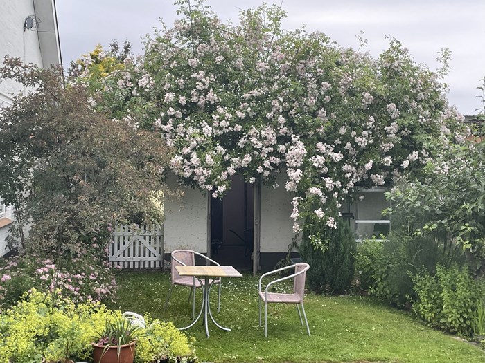 Irma og Leo Helmers have i Vokslev er en have med afstemte farver og forskellige temaer