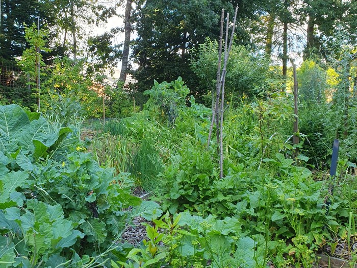 1. Have vi besøger er Bente Vyff og Svend Petersens store byhave på 8500 m2. Haven har gennem flere år bestået af staudehave, skovhave, køkkenhave, men nu er en del af haven omdannet til en gravefri, frodig og spiselig have med mange forskellige afgrøder. Her er der spiselige grønne alternativer, biodiversitet, permakultur, biologisk balance og som resultat af dette – en kæmpe stor haveglæde.