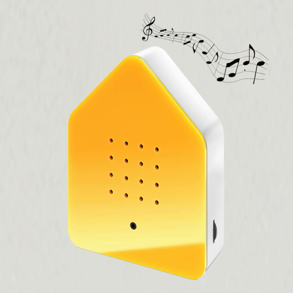 Nu kan du nyde fuglekvidder, hvorend du opholder dig. Det lille fuglehus har en sensor, som reagerer ved bevægelse. Når du arbejder i drivhuset, ved plantebordet eller ordner buketter fra haven, kan du nyde fuglenes sang.