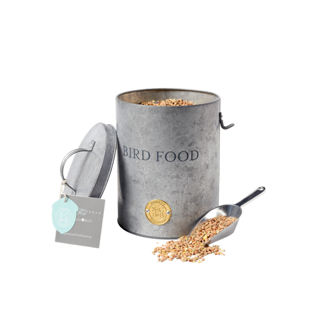 Med denne skønne galvaniserede dåse kan du opbevare fuglemad på en både praktisk og dekorativ måde.
