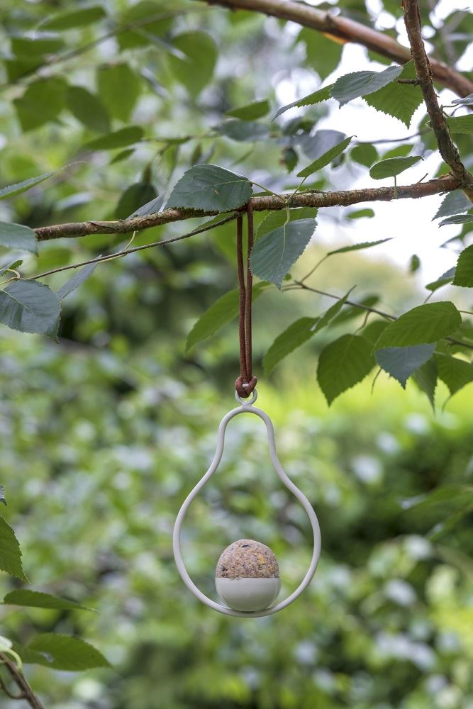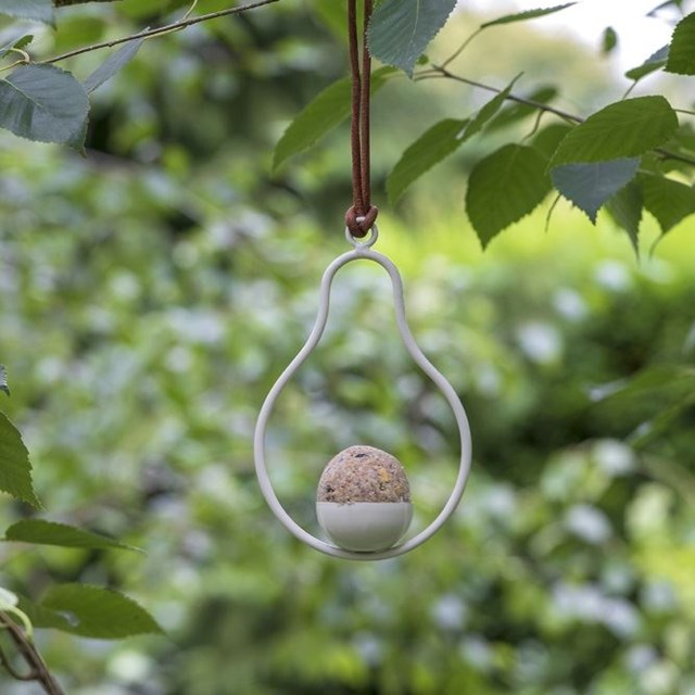 Med dette fine ophæng fra Burgon & Ball kan du servere mejsekugler for havens bevingede venner uden det grønne plastnet, som kan skade fuglene. Ophænget er designet i en fin pæreform i holdbart pulverlakeret stål med en læderstrop til at hænge mejsekugleholderen op. Der er desuden drænhul i bunden.