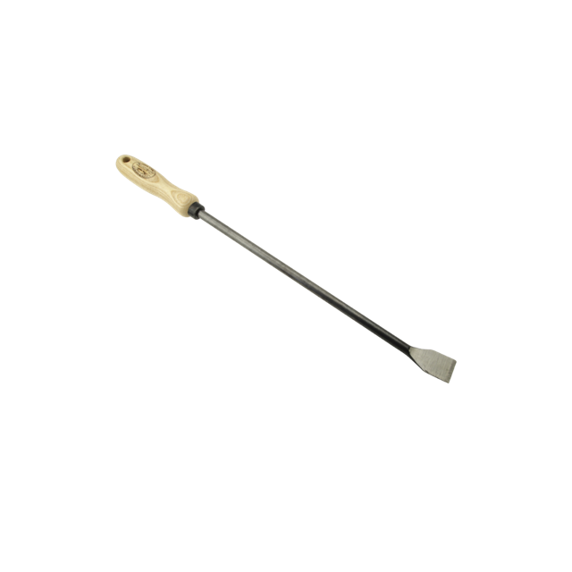 Aspargesjernet minder om et lugejern, men er længere, så de hvide asparges kan høstes dybt.