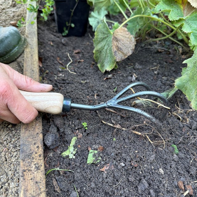 Den traditionelle håndkultivator, som er et uundværligt redskab i haven. Den er praktisk at have ved hånden, når man har luget i bedene.