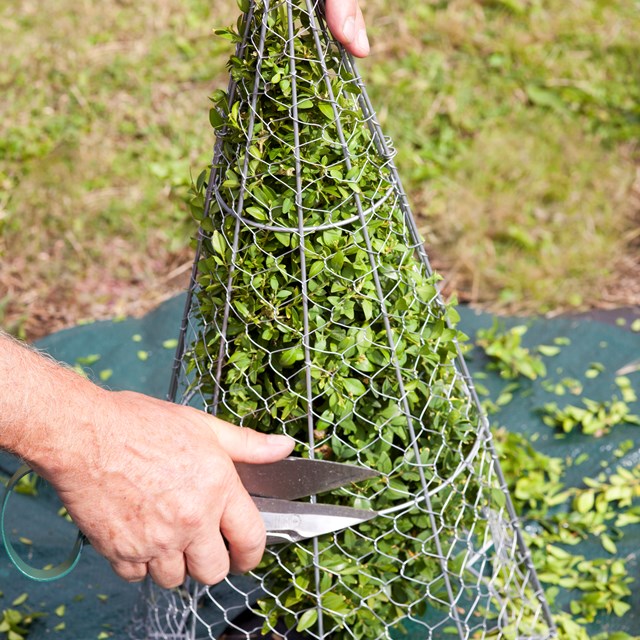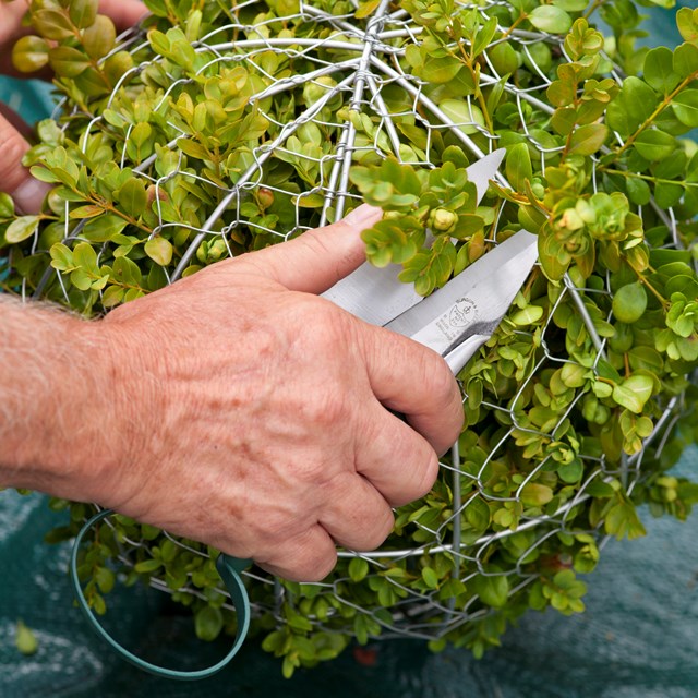 Haveselskabet fører både en stor model, der egner sig til at klippe de store buksbomkugler og andre større former, og en lille model, der egner sig til at klippe dine buske i finere former med flere detaljer . Skær og greb er vinklet for en mere ergonomisk arbejdsstilling.