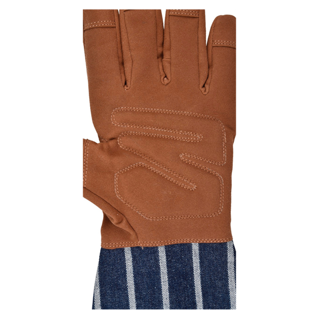 Handskerne er slidstærke og bløde at have på og holder sig pæne selv når de bliver våde. Mellem fingrene er et elastisk, åndbart og strækbart net, som holder hænderne kølige og giver bedre bevægelighed. Det stribede bomuldsstof på ydersiden giver handskerne både fleksibilitet og et stilrent, klassisk look.