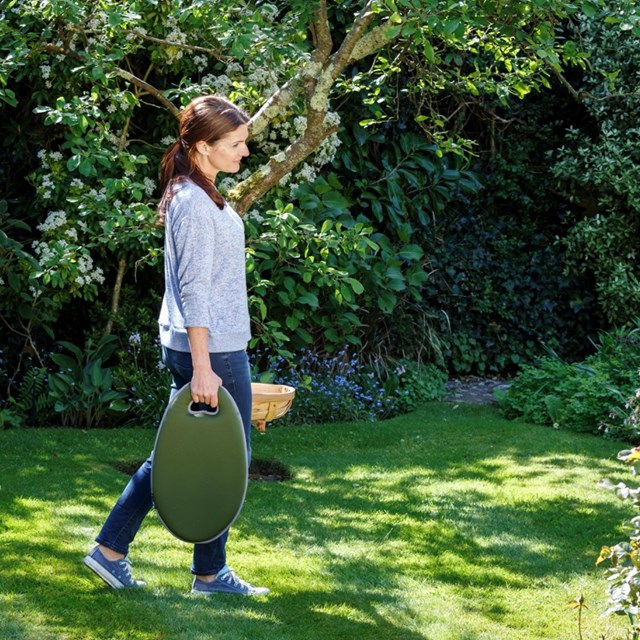 Knæpuden har et praktisk håndtag, der gør den let at flytte rundt på og har en størrelse hvor der er god plads til begge knæ.