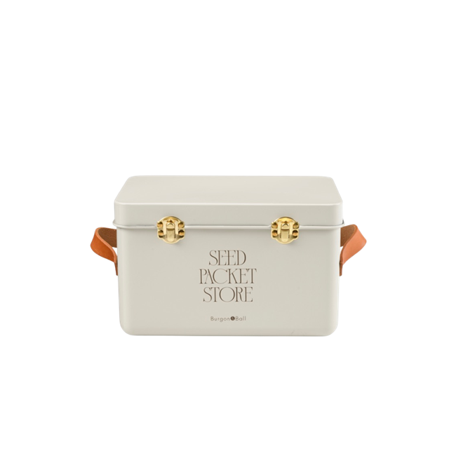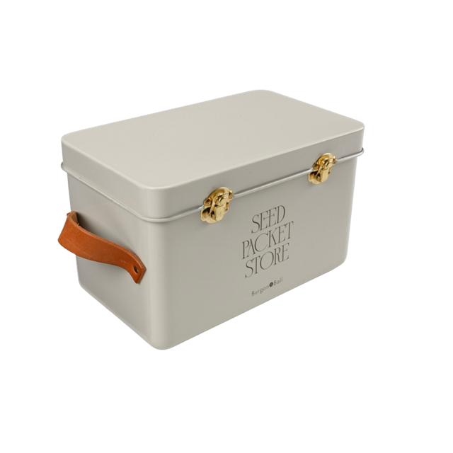 Denne dekorative og praktiske frøkasse i pulverlakeret stål med læderhåndtag fra engelske Burgon & Ball er perfekt til at opbevare og organisere din frøsamling.