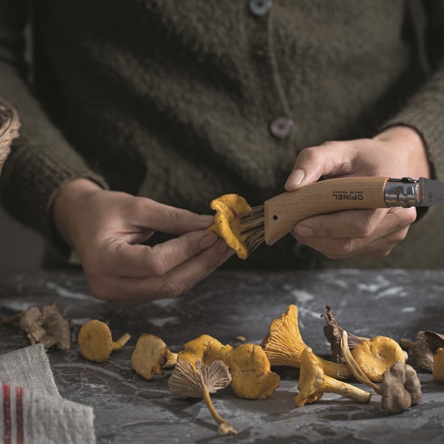 Med denne svampekniv fra Opinel bliver du godt klædt på til at gå på jagt i skovbundens skattekammer efter svampe.