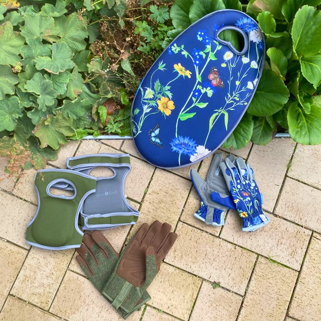 I dette sæt fra det engelske mærke Burgon and Ball får du både knæpude/knæbeskyttere og havehandsker.