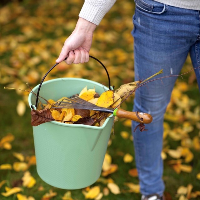 Denne spand fra Xala Design er lavet af kraftig genanvendt plast og har en stabil hank, der gør den uundværlig i haven. Du kan både bruge den til haveaffaldet, til at samle nedfaldsfrugt, til vanding af krukker og til visne rosenhoveder. Den er let at have med rundt i haven og kan finde plads i bedet mellem buske og stauder, når der skal luges.