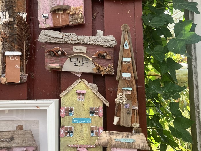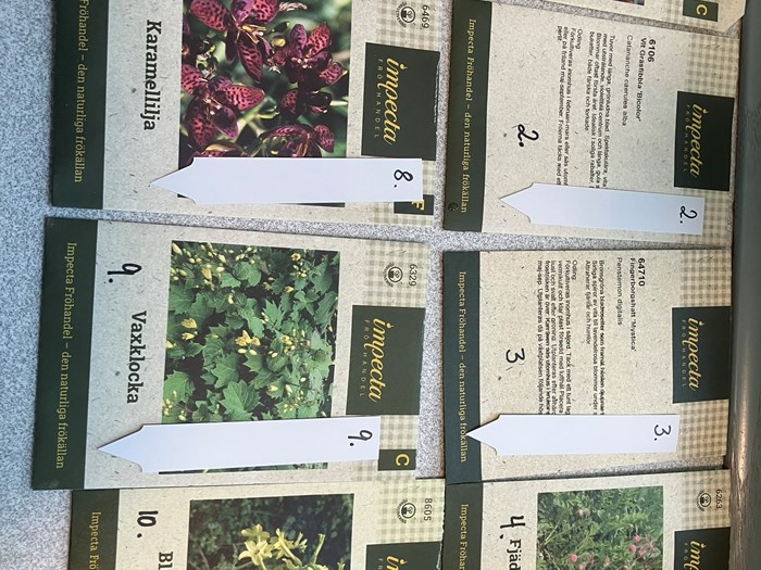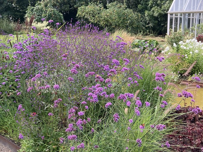 I weekenden var jeg med en flok glade havedamer i Sverige, og besøgte Norrvikens trädgårdar. Et helt fantastisk sted. Måske skal vi lave en bustur dertil, en gang. Det er mig med hatten:). Desværre blev vi nødt til at aflyse Faxe afdelings bustur til det fynske pga. for få tilmeldinger, vi skulle ellers have set 6 flotte haver... Billedet med de fire glas, er en gentagelse af et meget vellykket eksperiment, jeg lavede for et par år siden. Den 20. juli høstede jeg grønne sveskeblommer og lagde dem i saltlage i en skål med låg på. De har stået på køkkenbordet og fermenteret i 7 uger. Nu er de lagt på glas med olivenolie over. De smager og har konsistens som grønne oliven, med en svag smag af blomme. De skal helst stå fra nu og til sommer før de spises. Det kan virkelig anbefales. Billedet med de små huse har jeg taget for, at anvende som inspiration til hygge med børnebørnene. Og så skal I da også have et billede af verbenaer af forskellige slags, der fuldstendig har taget overhånd i bedet - men smukke er de.